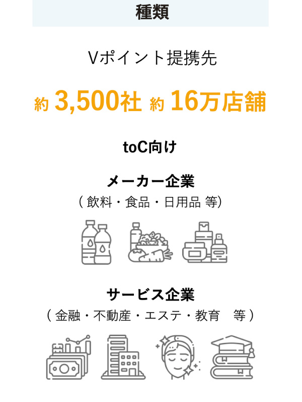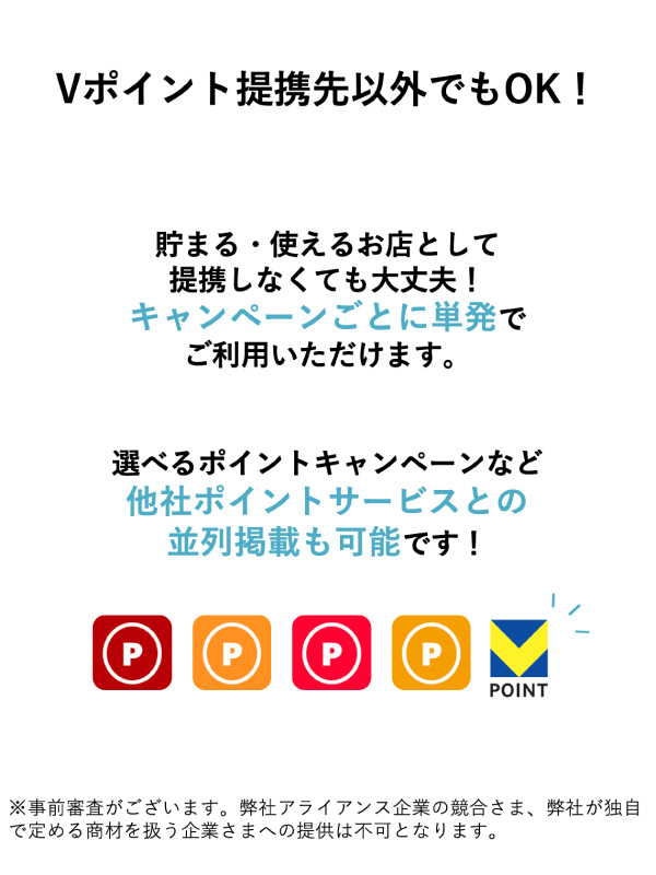 1.3億人(有効ID数)が利用するVポイントを Vポイント提携先(アライアンス契約企業)ではなくても集客のインセンティブやアクションの謝礼にご活用いただけます。